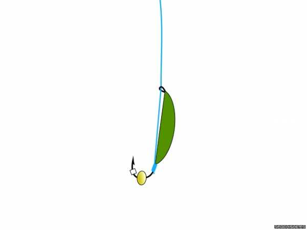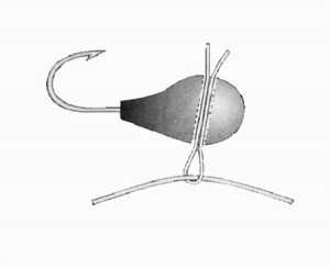 - Затем узел затягивается, а снасть продвигается по леске к узлу.