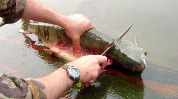 - сделать глубокий надрез по линии, разделяющей спину и брюхо;