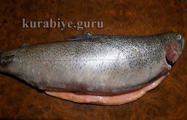 Сначала необходимо вымыть рыбу, разрезать брюхо от головы до плавника и вынуть все внутренности. Делаем надрез головы до кости под углом в 30 градусов с одной стороны, затем переворачиваем и надрезаем также под жабрами с другой.