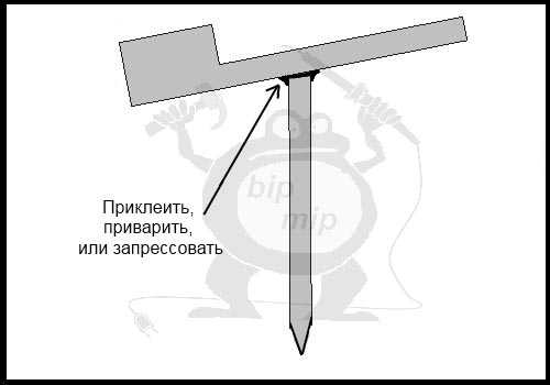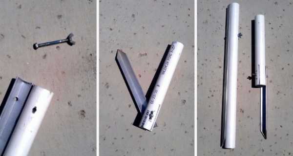 Можно предложить вариант изготовления самого простого комлевого держателя. Для этого, придется подготовить отрезок пластиковой водопроводной трубы (жесткой) и отрезок арматуры. Диаметр трубы должен быть таким, чтобы внутрь помещалась нижняя (комлевая) часть удочки. Технология изготовления заключается в том, что арматура крепится к трубе с помощью скотча. При этом, нужно прикладывать максимум усилия, чтобы соединение получилось достаточно надежным. Конец арматуры нужно заточить с помощью болгарки или просто сделать срез под углом 45 градусов. Устройство хотя и простое, но недостаточно надежное из-за скотча.