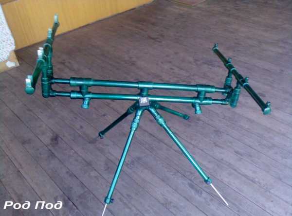 При использовании нескольких удилищ, удобным вариантом выступает род под с четырьмя стойками. Такую подставку возможно регулировать, поэтому ее ставят на любой берег, выбрав необходимый угол для наклона удочки.
