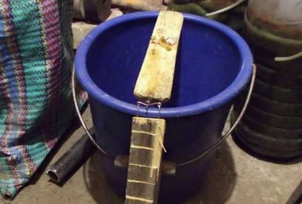 К бутылке, одетой на проволоку, дополнительно одевают жестяную крышку, используемую для консервации. Со стороны бутылки на крышку привязывают приманку и устанавливают всю конструкцию на ведро. К ведру можно приставить деревянную планку или дощечку, чтобы облегчить подъем зверьков наверх. Если мышей в гараже или подвале много, то ведро необходимо изнутри протереть маслом или налить воды, чтобы сделать поверхность максимально скользкой. За ночь может попасться в ловушку до десяти зверьков, поэтому приходится принимать меры, чтобы мыши не сбежали из ловушки.