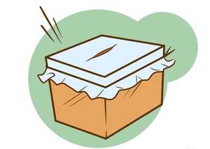 Коробка должна быть без верхних створок. Иначе ящерица не сможет попасть в коробку. Сверху потребуется натянуть на коробку пластиковую плёнку. Чтобы она не провалилась внутрь коробки, её нужно укрепить по бокам скотчем. Это позволит ящерице спокойно проползти до центра натянутой плёнки к намеченной цели.