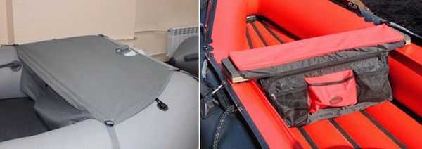 Они помогают сделать пребывание в лодке еще более комфортными. На солидных по размеру лодках допустимо размещение особых надувных спинок, превращающих пуфики в кресла. Их также можно соорудить своими руками.