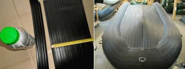 Надо отметить, что укрепление днища обойдется намного дешевле, если просто использовать ПВХ, чем возить лодку в сервис и там полностью менять дно. Ленты из ПВХ нужно установить и в местах стыков пайола.