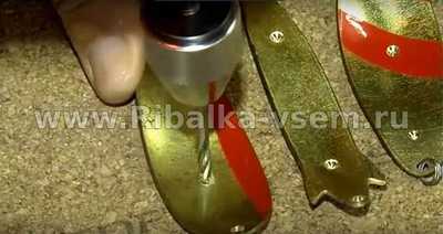 теперь нам нужно разметить места сверловки, первое нужно для крепления блесны к леске или поводку, второе для монтажа «антизацепа»