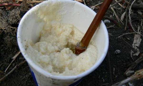 Масса готова к дальнейшим действиям. Теперь ложкой или любой палочкой мешаем смесь. Эта операция займет не менее 30 мин, при готовности болтушка начинает тянуться за ложкой на расстояние в несколько сантиметров и не отрывается.