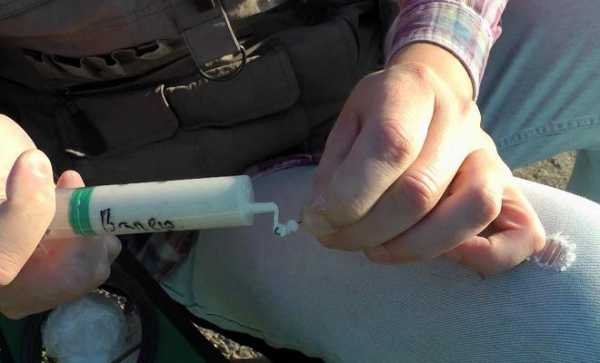 Остается подготовить и переложить готовую приманку в медицинский шприц, детскую соску или другую тару для хранения. Шприц или соска позволяют насаживать приманку, постепенно выдавливая и обкручивая ее вокруг крючка. Если болтушка уложена в коробочке, закручивать ее можно с помощью толстой травинки или щепки.