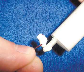 В случае использования шприца надавливаем на поршень — через отверстие поступает тонкая полоска приманки. Ее обматываем вокруг жала крючка и делаем достаточный по величине шарик. Таким же образом насаживается манка с помощью детской соски.
