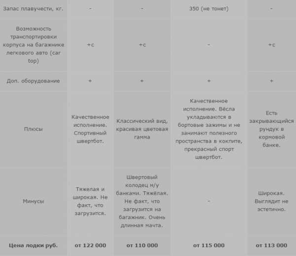 При взгляде на таблицу видим, что в России тоже научились делать лодки — Лагуна – Комби и Тортилла – 305 Комби это качественно сделанные лодки.
