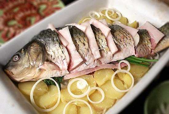 ΠΡΠ»ΠΈ Π²Ρ Ρ ΠΎΡΠΈΡΠ΅ ΠΏΡΠΈΠ³ΠΎΡΠΎΠ²ΠΈΡΡ ΠΌΠ΅Π½Π΅Π΅ ΠΆΠΈΡΠ½ΡΠΉ ΡΡΠ±Π½ΡΠΉ ΠΏΡΠΎΠ΄ΡΠΊΡ, ΡΠΎΠ³Π΄Π° ΠΊΠ°ΡΠΏΠ° ΡΠ»Π΅Π΄ΡΠ΅Ρ Π·Π°ΠΏΠ΅ΡΡ. ΠΠΎΠΎΠ±ΡΠ΅, Π·Π°ΠΏΠ΅ΠΊΠ°Π½ΠΈΠ΅ Π»ΡΠ±ΡΡ ΠΏΡΠΎΠ΄ΡΠΊΡΠΎΠ² ΠΏΠΎΠ·Π²ΠΎΠ»ΡΠ΅Ρ ΡΠΎΡ ΡΠ°Π½ΠΈΡΡ Π±ΠΎΠ»ΡΡΠ΅ ΠΏΠΎΠ»Π΅Π·Π½ΡΡ Π²Π΅ΡΠ΅ΡΡΠ² Π² ΡΠΎΡΡΠ°Π²Π΅ Π±Π»ΡΠ΄Π°, ΠΏΡΠΈ ΡΡΠΎΠΌ Π²Ρ ΡΠΌΠ΅Π½ΡΡΠ°Π΅ΡΠ΅ ΠΊΠΎΠ»ΠΈΡΠ΅ΡΡΠ²ΠΎ Β«Π²ΡΠ΅Π΄Π½ΡΡ Β», ΠΊΠ°ΠΊ Π² ΡΠ»ΡΡΠ°Π΅ Ρ ΠΆΠ°ΡΠΊΠΎΠΉ Π½Π° ΠΌΠ°ΡΠ»Π΅. Π 100 Π³ΡΠ°ΠΌΠΌΠ°Ρ ΠΌΡΡΠ° ΠΊΠ°ΡΠΏΠ°, ΠΏΡΠΈΠ³ΠΎΡΠΎΠ²Π»Π΅Π½Π½ΠΎΠ³ΠΎ Π² Π΄ΡΡ ΠΎΠ²ΠΊΠ΅, ΡΠΎΠ΄Π΅ΡΠΆΠΈΡΡΡ ΠΎΡ 100 Π΄ΠΎ 150 ΠΊΠΊΠ°Π».