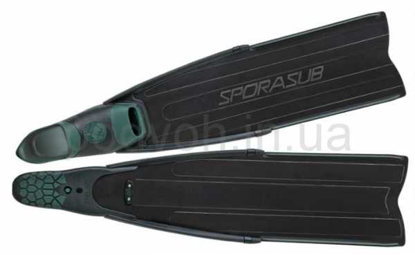 • Наиболее удачные из всех ласт Sporasub — » карбоновые». Я пробовал в них нырять на большие глубины (45м) и они по своим характеристикам почти не отличались от карбоновых. При этом они не были достаточно устойчивыми, так как у них нет резиновых ребер жесткости на конце лопасти (которые применяются на карбоновых ластах, предназначенных для погружений на большие глубины), но в них было удобно маневрировать. Из всего того, что я использовал, я выбираю для серьезного фридайвинга (т.е. для установления рекордов) калошу от Sporasub с хорошей карбоновой лопастью (мне нравятся те, что пожестче), а для всего остального — калошу от Soporasub и частично «карбоновые» лопасти Sporasub Radical.