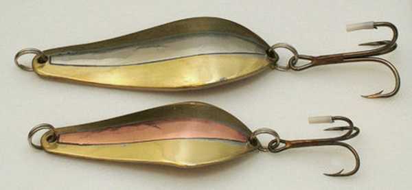 - колеблющиеся блесна; представляет собой металлическую пластину, изогнутую в различном профиле. Имея малое сопротивление, блесна играет даже при медленной проводке. Притом, обладая приличной массой, забрасывается на внушительное расстояние;