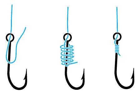 Узлы для крючков используют в сотнях различных вариаций, конкретно которые выбираются по виду крючка (с ушком или с лопаткой), по материалу (монолеска или плетенка), по толщине лесы.