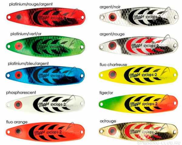 Цветовая гамма блесны Mepps Syclops достаточно разнообразна. Различают следующие категории оттенков приманки: