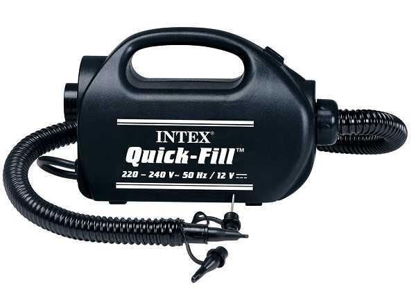 Пользуясь универсальным устройством Intex 66622, можно за пять минут накачать надувную лодку 3,5 м без особых усилий. Прибор имеет три насадки, при помощи которых накачивают надувные кровати и матрасы не только фирмы Intex, но и других фирм-производителей.