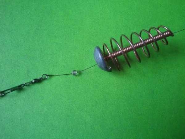 Пружину применяют в качестве кормушки, набиваемой подкормкой, и грузила с весом около 60г.