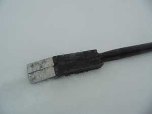 Пешня с таким металлическим стержнем подойдет для крепких рыбаков. Благодаря конструктивной особенности формы, получается, откалывать большие куски льда. Отверстие выходит достаточно широкое.