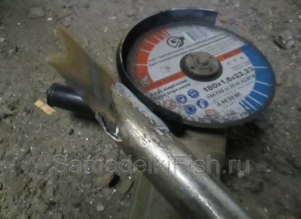 Подготовив все детали данной самоделки, можно приступать к сборке. Для этого нужно в пропил на трубе вставить нож и сварить их,