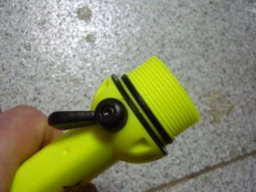 Ручку фонаря подгибаем для создания небольшого угла. Во–первых, удобно держать, во-вторых, рукоятка плавает строго горизонтально, а фонарь при этом направлен немного вниз. Это помогает замаскировать вас от нежелательных глаз с берега, и во-вторых, очень удобно работать с подстреленной рыбой (просто вплываешь в луч фонаря). Ручку приматываем изолентой.