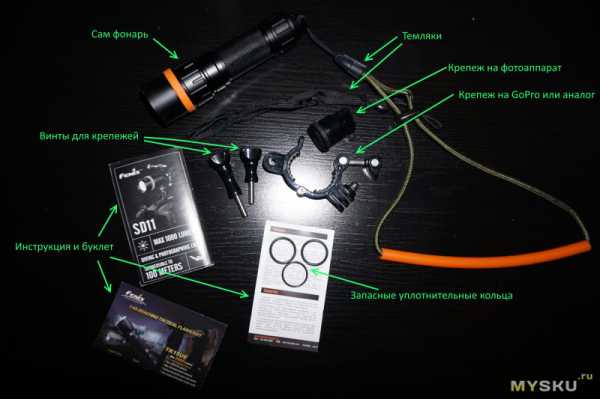 При покупке подводного фонаря стоит обращать внимание на шнурок, который обеспечивает качественное крепление и препятствует потери фонаря на глубине. Выбирайте прочный шнур с металлическим крепежом типа «крабик».