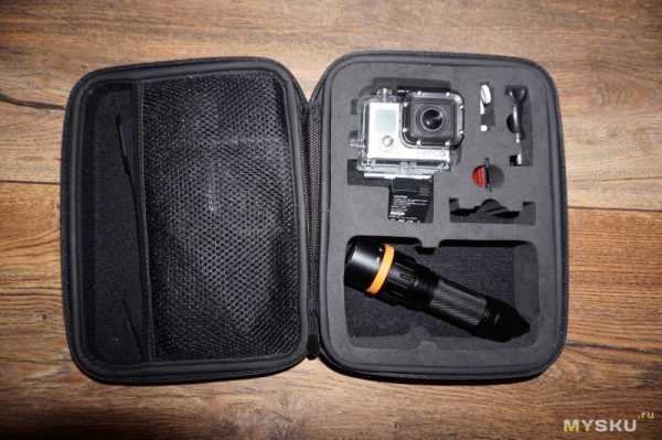 Как по мне, не хватает только аккумулятора и кейса, куда весь этот стафф можно сложить. Люблю кейсы, поэтому смог запихнуть фонарь в этот — для GoPro: