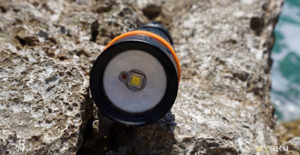 Работает от обычных пальчиковых батареек ( в комплекте их не было, сразу купил хорошие ). Хватает их мне часов на 12 непрерывного свечения. Защита от протекания — оринг ( резинка такая ) установлена на корпусе в месте соединения, где закручивается линза фонаря. Изначально уже была смазана силиконом для герметизации. Необходимо следить, чтобы ничего не попало ( песок, пыль, волоски и т.п.) во избежании протечки.