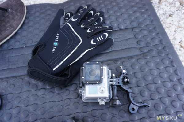 Комплектные аксессуары крутые, пригодились все кроме мелкого темляка.Номер один — крепеж для экшн-камеры. Чтобы получить подсветку для камеры, крепим к аквабоксу сам крепеж комплектным винтом: