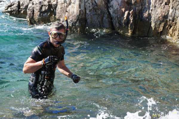Плавая, можно держать руки на ремне и забыть про камеру, пока она не понадобится. Также, если что-то захочется схватить под водой, можно смело бросать камеру с фонарём и они никуда не денутся. Мне это понравилось.
