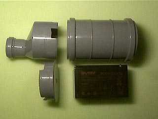 Для начала, нам необходимо приобрести в любом компьютерном магазине аккумулятор от бесперебойного источника питания. В данном случае, это аккумулятор фирмы Sven 12В, 7ач, размером 90x65x150. Фирма – производитель аккумулятора значения не имеет, за основу берем размер самой батареи. Корпус фонаря приобретаем в обычном хозяйственном магазине, это обычная серая муфта для сантехнических труб диаметром 110мм и длиной 150мм (они все такие). Аккумулятор данного размера плотно заходит в эту муфту, без люфта. В том же хоз. магазине приобретается пластмассовая заглушка для этих же труб + переходник со 110мм до 50мм. Т.к. длина аккумулятора и муфты практически одинакова, то для того чтобы вставить заглушку нам придется ее немного усовершенствовать.