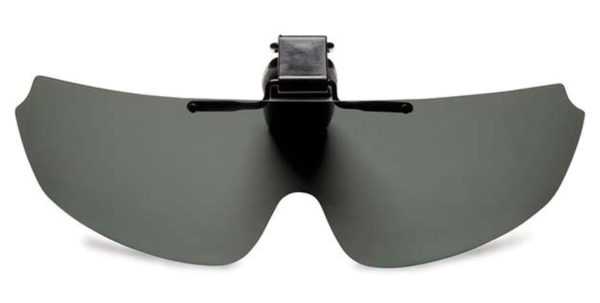 Поляризационные накладки можно крепить к оправе очков с диоптриями при помощи зажимов. Помимо фиксации, эти зажимы обеспечивают рабочее и нерабочее положение накладок.