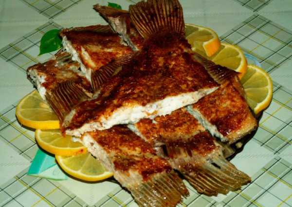 - Жареная камбала. Используемые продукты: мясо рыбы — 1−2 кг, молоко — 200 грамм, соль, лимон. Рыбное филе нарезать на куски, залить молоком и оставить на 20 минут. Затем вынуть их, обсушить, обработать панировочными сухарями и поместить на разогретую сковороду с оливковым маслом. Обжарить с обеих сторон до появления золотистого цвета. Во время жарки следует посолить блюдо. Готовую рыбу обрызгать лимонным соком и украсить измельчённой зеленью.