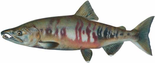 Кижуч (Oncorhynchus kisutch). Стадия преобразования в реке к нересту.