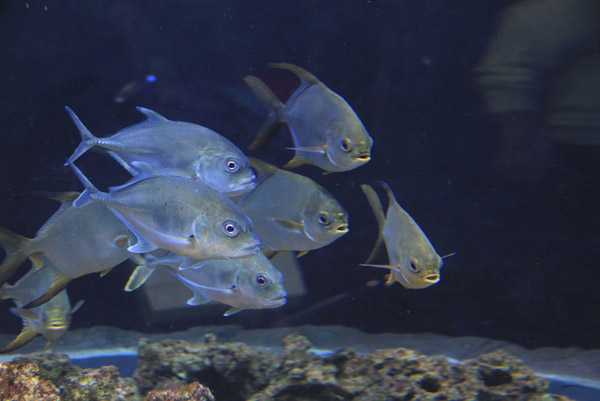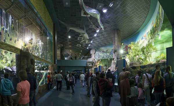 В кольцевом аквариуме объёмом 14 куб. м посетители знакомятся со стайным