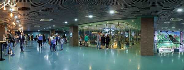 Первое, с чем встречается посетитель – просторные помещения Москвариума. Всё-таки, да, океанариум, встроенный в ТРЦ, сильно ограничен в объёмах, следовательно, и функционально. На этом объекте наши проектировщики смогли работать масштабно.