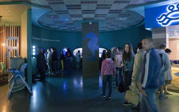 Аудио-интерактивная зона «На дне моря» и экспозиция «Открытое море. Главный морской аквариум» (аквариумы