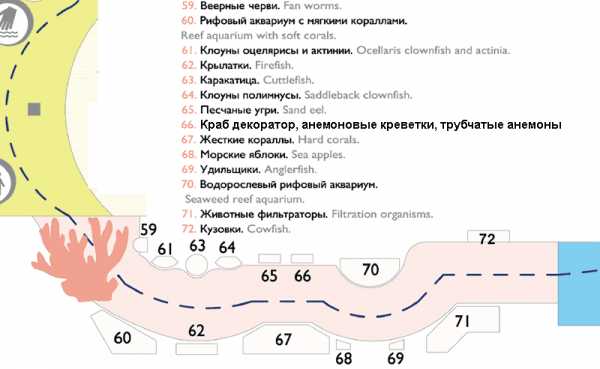 Экспозиция «Рифовый зал» (аквариумы 59 — 72)