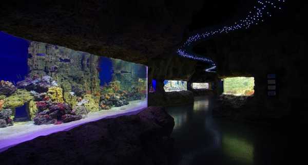«Рифовый зал» оформлен как подводная пещера с мигающими огоньками наверху