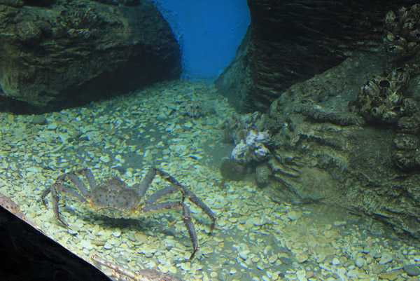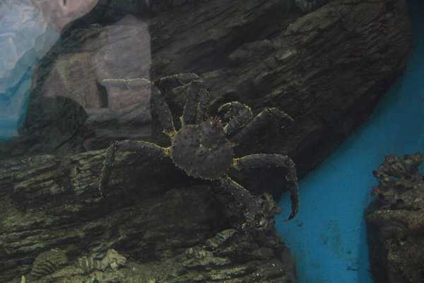 Наш старый знакомый по океанариуму на Чистых прудах – дальневосточный краб. Здесь для него выделили аквариум побольше, но зато подселили друзей.
