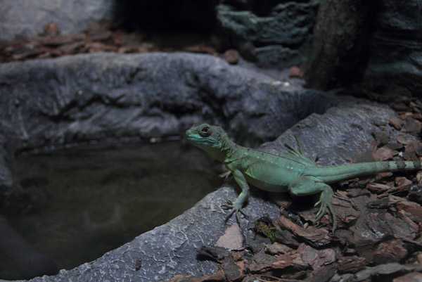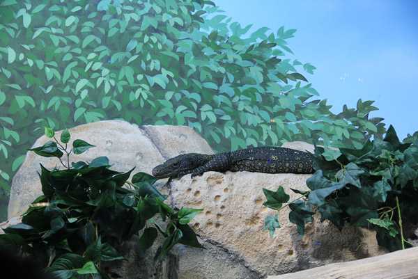 Ящерица замерла в одной позе, прямо как фотомодель. Но на посетителей океанариума её поза не произвела особого впечатления. Возле её вольера никто почти не останавливался.