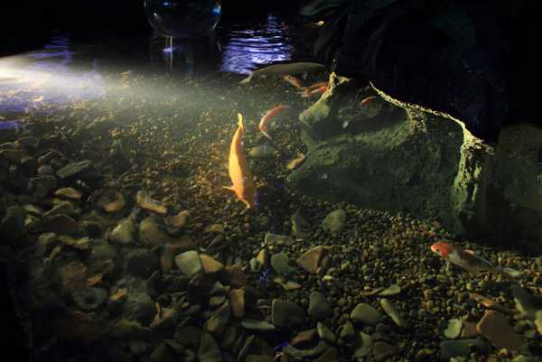 В центре комнате с животными и скатами находится небольшой бассейн, где плавают такие рыбки.