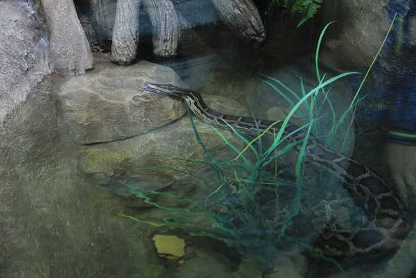 Питон. Всё бы ничего, если б не человеческий силуэт в отражении.