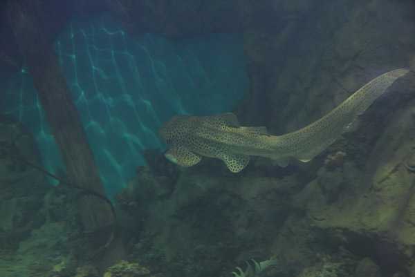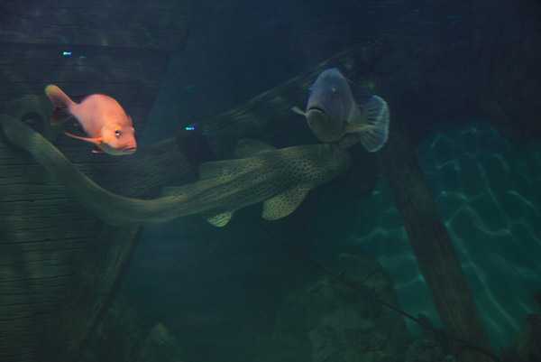 Пиратский корабль с небольшими акулами и разными рыбами тоже вызвал большой интерес. Крики «вау-у» раздавались, когда леопардовая акула проплывала вплотную со стеклом, отделяющим её от посетителей.