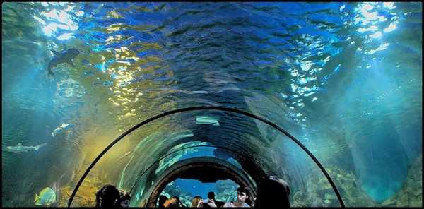 С билетом, купленным заранее через интернет или в одной из 16 касс океанариума, спускаемся по лестнице, эскалатору, или на лифте (специально для людей с ограниченной подвижностью).