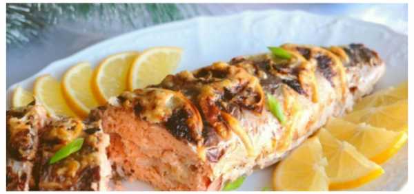 Запеченная с шампиньонами рыба голец