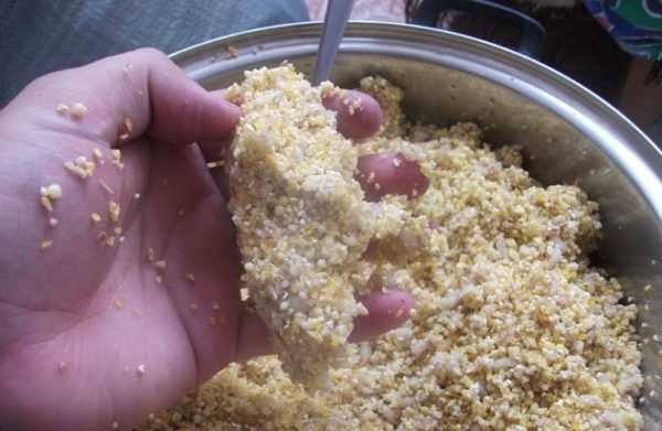 Кормовая смесь должна состоять из мелкофракционных ингредиентов и быть хорошо смешанной. Для этого все составляющие тщательно разминают и смешивают вручную.