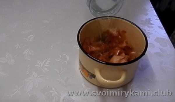 - Поставьте сковородку на маленький огонь, тушите до испарения влаги. Это около часа.