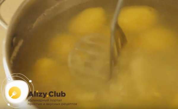 Картофель без кожуры промываем и нарезаем кубиками по два сантиметра. Опускаем в кастрюлю с кипящим бульоном, кладём туда же нечищеную дольку чеснока и варим четверть часа. Тем временем натираем очищенную и промытую морковку, а луковицу распускаем узкими полосками чуть крупнее морковной стружки.