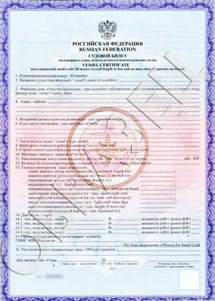 Теперь судовой билет будет представляет собой не книжечку, а лист, что называется, гербовой бумаги формата А4, заполненный с двух сторон.