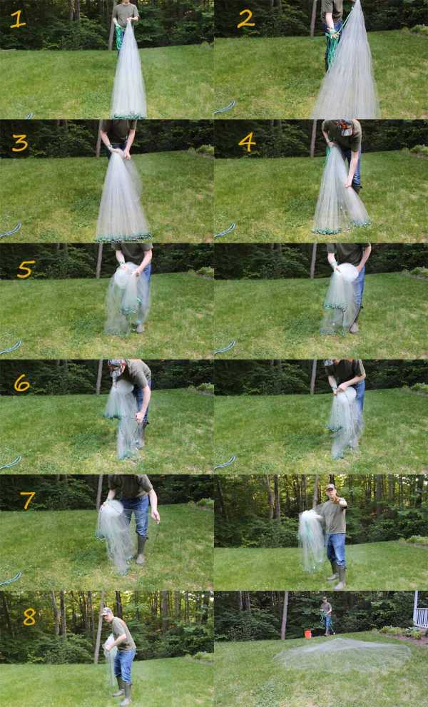 Заброс кастинговой сети производится с берега или с лодки, ну для начала лучше потренироваться на полянке или газоне.